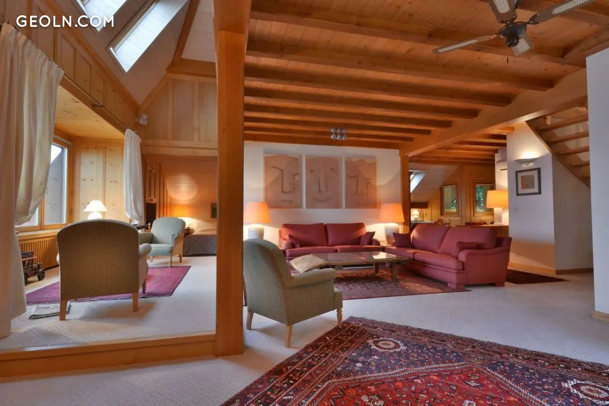 Is the apartment located in a small 5-storey condominium renovated in 2001? Former estate house built in 1930. This 4.5-room duplex apartment with a living area of approximately 164 sqm on two levels has high quality fixtures. Magnificent panoramic view of Lake Geneva and mountains. The attic is air-conditioned and served by the building's elevator, which goes directly to the apartment. Access from the car park via a private funicular. The condominium has its own train stop. Two castle garages, a wine cellar, an attic and a storage room complete this outstanding property.