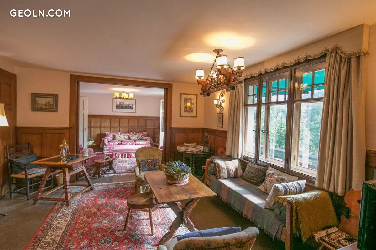 Building on a hill, raises the main chalet, consisting of 19 rooms (about 1'200 Sq.m.) divided between 3 floors, with terraces and a large balcony. This prestigious home was built in the early 20th century and has received children. The private outdoor pool is just a few meters from the chalet.