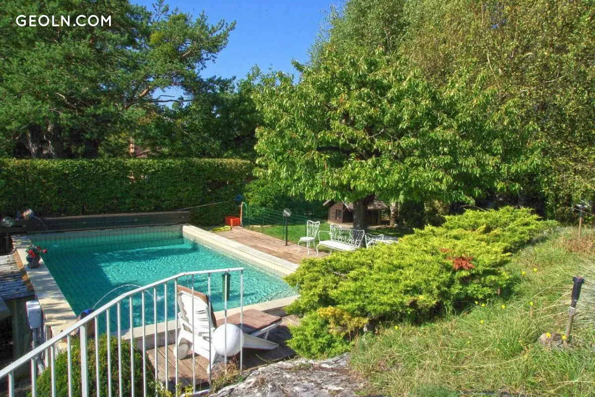 Elle à été érigée sur une splendide parcelle en belvédère. Ce bien bénéficie d'une situation unique, bucolique et idyllique et offre une vue spectaculaire sur le lac, les Alpes. Le lever et le coucher du soleil vous offriront un magnifique spectacle quotidien.
