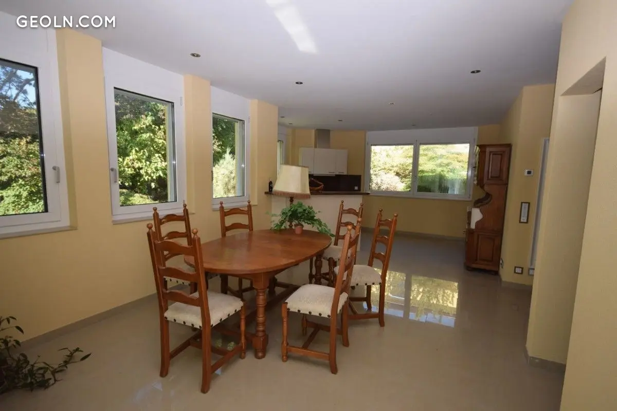 La propriété offre également plusieurs terrasses, deux garages pour 5 voitures au total et plusieurs places de parc extérieures, un poulailler avec petit parc, une marre aux canards, une piscine intérieure et un très grand jardin fruitier (raisin, kiwis, coings, etc) .