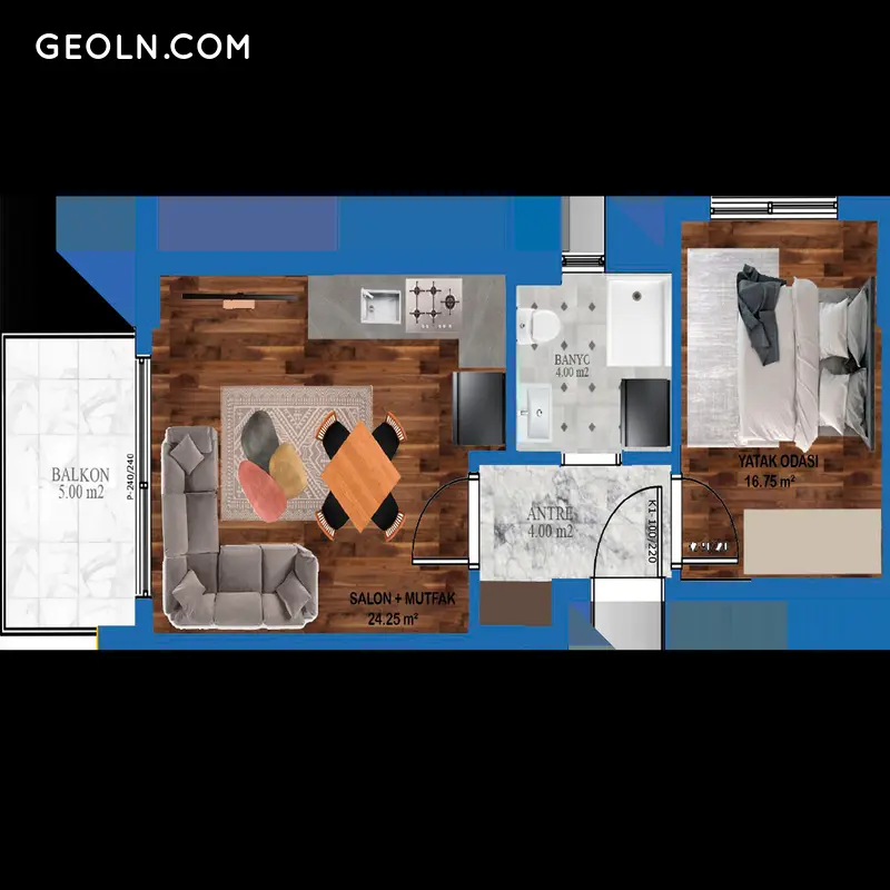 Apartment 1 bedroom 50 m² in Alanya, Turkey on the map of Alanya