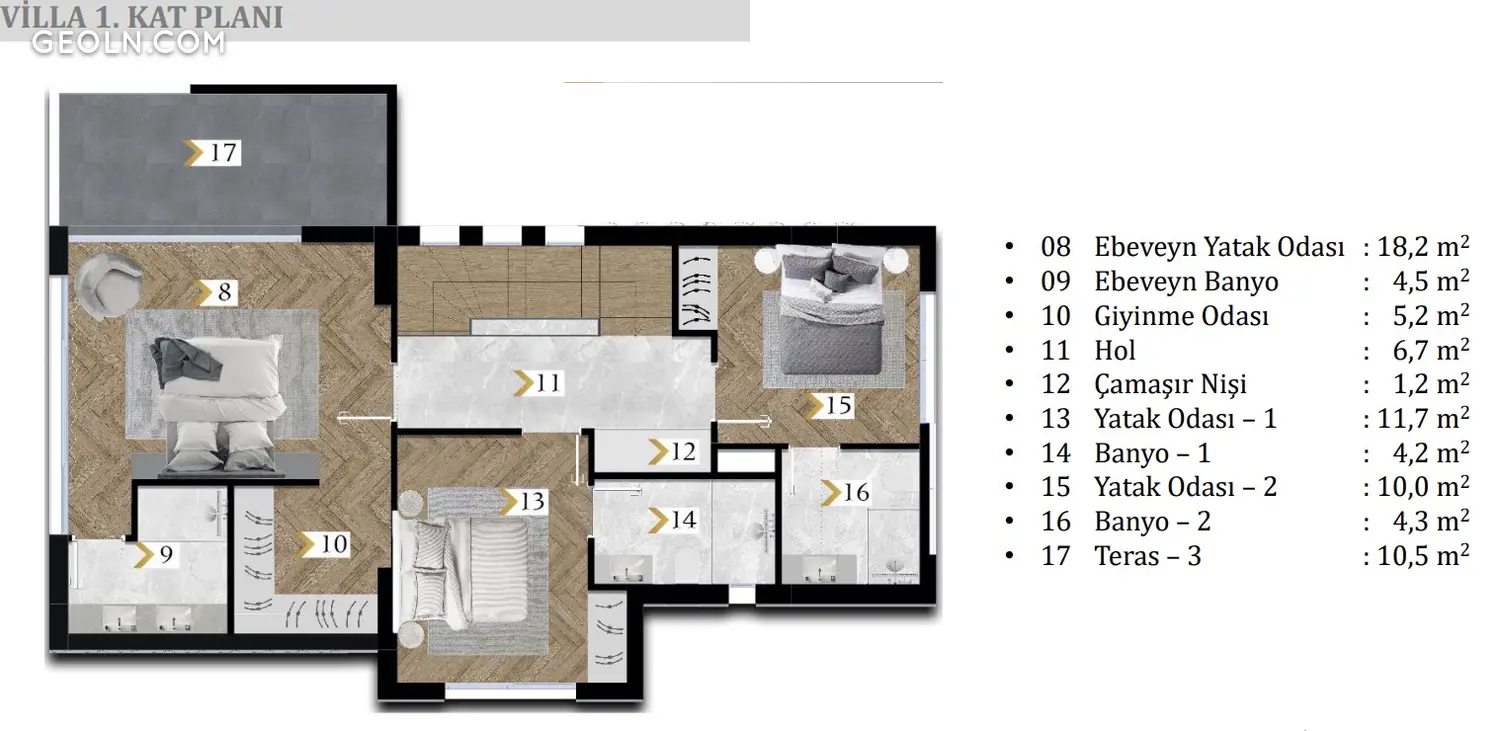 Ceshme Dalyan project is located in the Dalyan region of Cesme. 8 villas designed in the project are located on a land with wide panorama and towards the scenery. Living spaces, roofs and pools of each villa, in consideration with the privacy within the premise, have been designed in order to not to block one another in a visual manner. Private gardens for each villa have been created with landscaping operations.