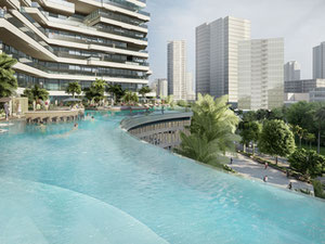 Преимущества: уникальный спа-центр UFO Spa and Relaxation Pods, тренажерный зал, бесконечный бассейн, детские игровые площадки, рестораны и магазины, сад, баскетбольная площадка, медицинский центр, смотровая площадка, водные тренажеры, спортивный зал, тренажерный зал на открытом воздухе, беговые дорожки и теннисные корты.
