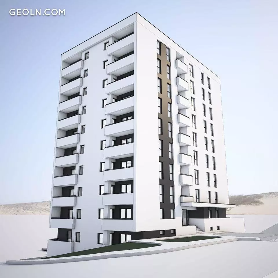 Technical characteristics: all buildings are made of YTONG blocks and reinforced concrete elements, this material is used for both exterior and interior wall masonry. Great attention was paid to the thermal and sound insulation systems of the walls and floors of the blocks. For the exterior of the buildings, the Multipor thermosystem is used, over which the decorative plaster is applied. A perfect combination of white plaster and graphite plaster forms the perfect look for the bold façade of residential buildings.