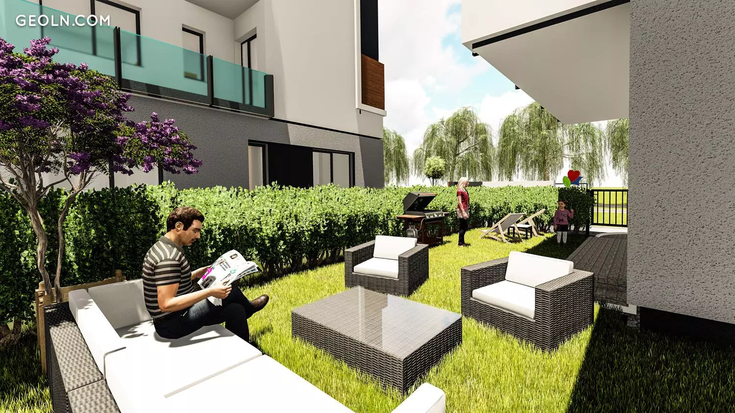 In total, the "Serra Banat Residence" Residential Complex comprises 22 residential units finished "turnkey" with materials of the highest quality, of which 19 apartments are designed with 2 rooms and only 3 apartments have three-room sketches. The homes have usable areas from 46 sqm up to 68 sqm. The ceiling height in the apartments is 300 cm. The apartments on the floors have terraces and loggias with a surface of up to 13 square meters, and the main advantage for the apartments on the ground floor is its personal garden with the surface of up to 50 square meters and the fact that they have separate entrances.