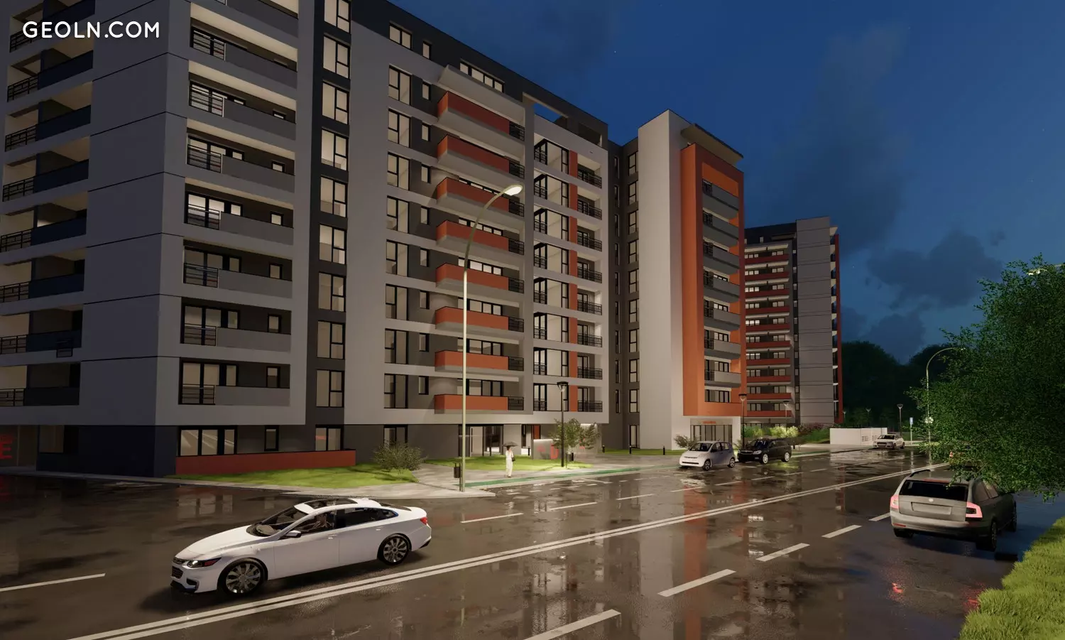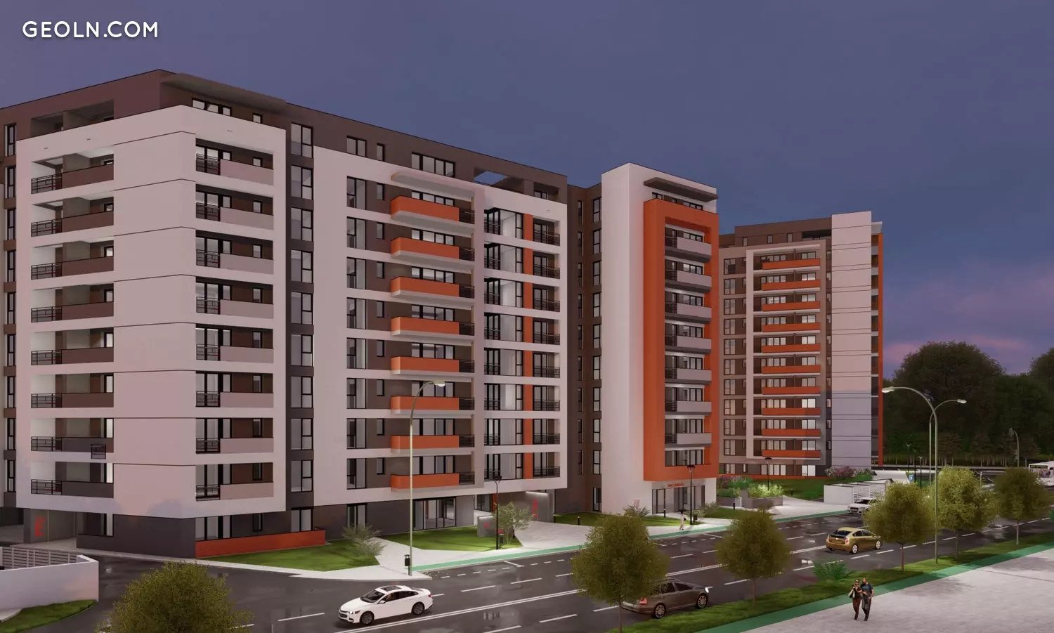 The residential district "Iris Armoniei" comprises eight residential buildings, which have a different height regime, from 6 to 10 floors, all being built with basement and ground floor and with a retired floor each. Green spaces, playgrounds, rest areas and pedestrian alleys - all are arranged inside the yard, which has an area of 3500 sqm. The parking spaces are planned in three underground levels and have the capacity to receive 316 cars, as well as there are 209 underground parking spaces. In the housing complex "Iris Armoniei" there are designed 438 apartments with one, two and three rooms, which are delivered to the beneficiaries finished and equipped with sanitary ware, with all the doors installed both on the exterior metal door and interior doors from the Door Door . The houses have tiled and laminated floors and have tiles and paints on the walls. The heating plants are installed in each apartment, there is heating in the floor and room thermostat. Gas sensor installed and functioning air conditioning system. All apartments are connected to water, electricity, gas pipe and sewerage. Buyers have the possibility to choose apartments with an area from 38.40 sqm to 77.46 sqm.