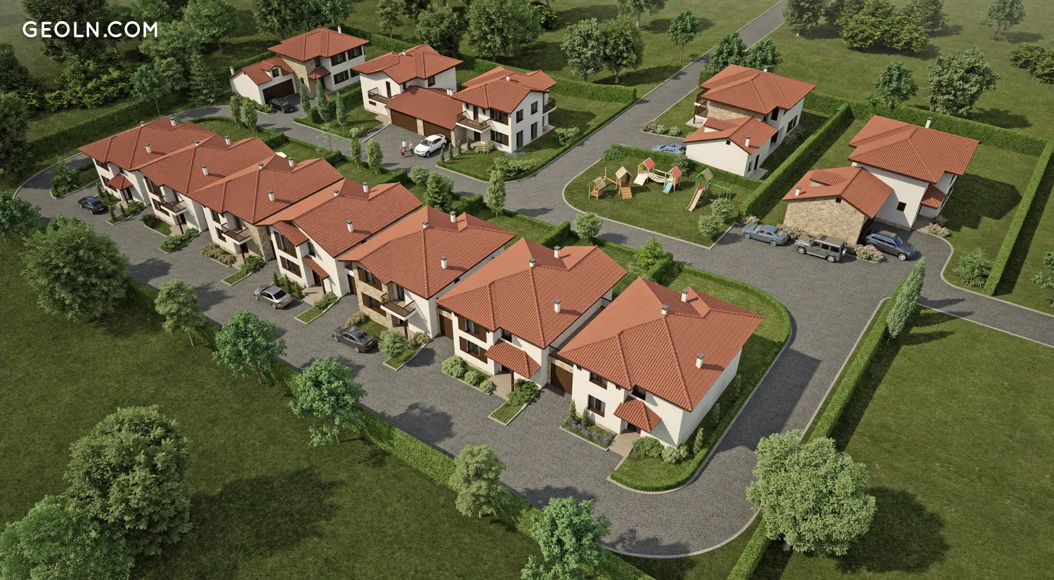 Комплекс предлагает особняки, расположенные в благоустроенной инфраструктуре паркового типа, с дворами и аллеями, видами на горы Лозен, чистым воздухом и, прежде всего, безопасностью.
