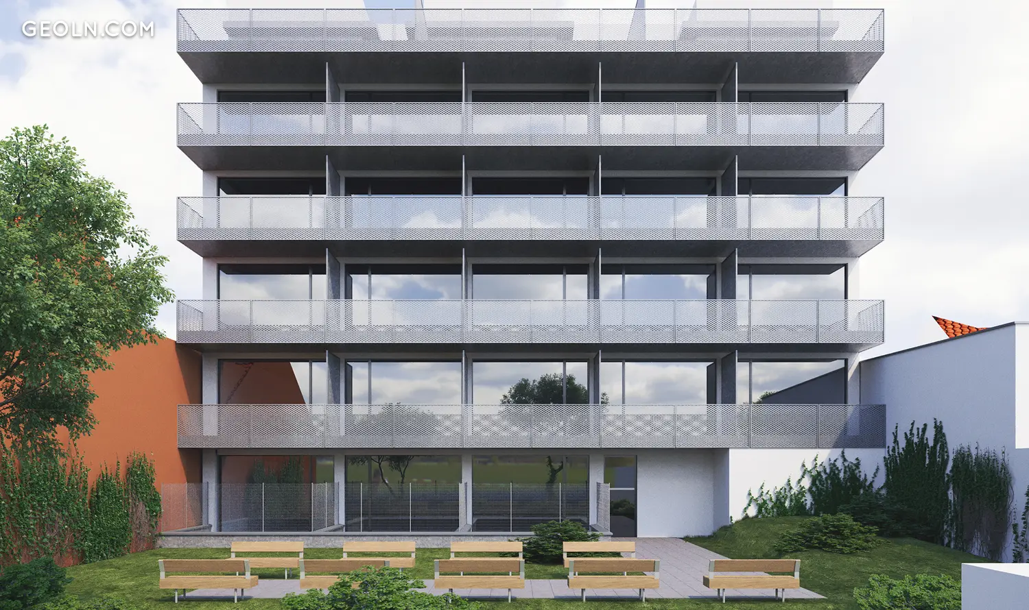 Многофункциональный дом сочетает в себе более интимную жизнь с нежилыми помещениями и офисами. Они ориентированы на улицу. В резиденции будет всего 41 единица жилья 1 + кк и 2 + кк.