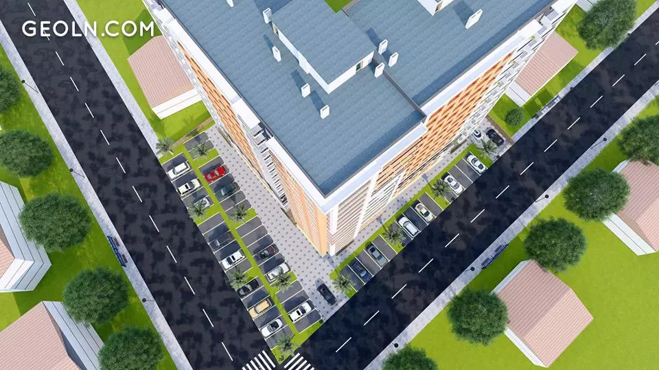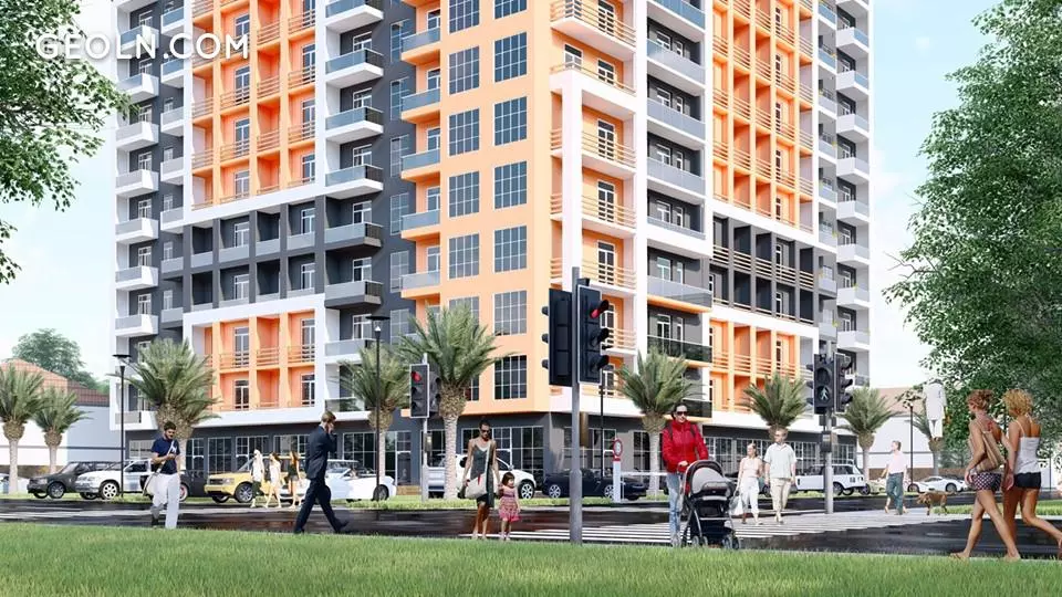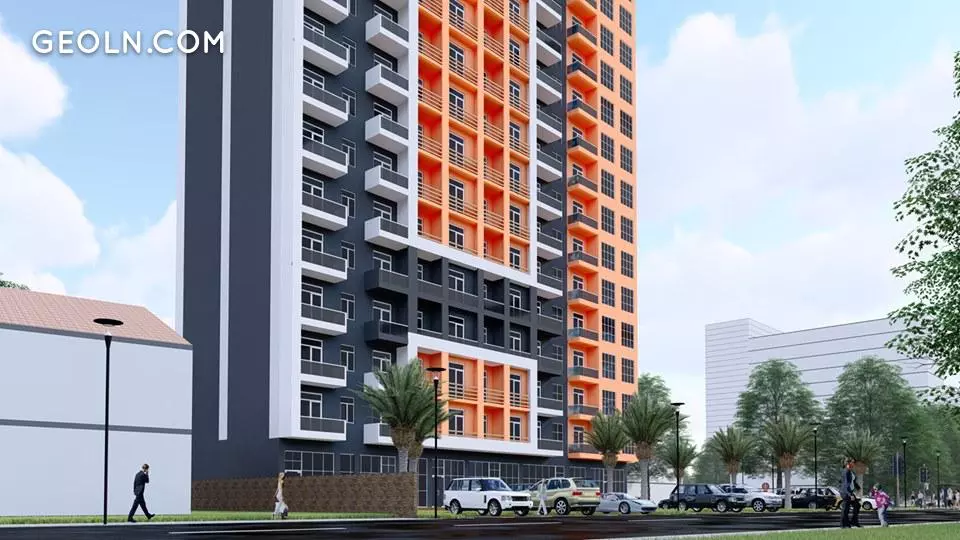 ЖК на ул. Ангиса в Батуми от застройщика ICA Group – это здание высотой в 18 этажей, имеющее L-образную форму. Одна из особенностей внешнего вида заключается в том, что со стороны двора здание имеет лаконичный фасад, выполненный в элегантном сочетании белого и серого цветов. А вот со стороны улицы оно выглядит иначе, ведь там в отделке фасадов главная роль отдана более насыщенному и заметному оранжевому цвету.