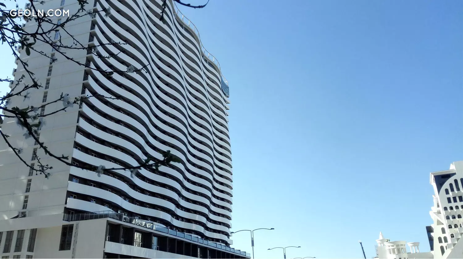 Здание находится всего в 50 метрах от набережной на улице Кобаладзе, дом 2. Оно построено перпендикулярно береговой линии, а это значит, что красивый вид на бесконечные морские просторы будет доступен каждому собственнику недвижимости.