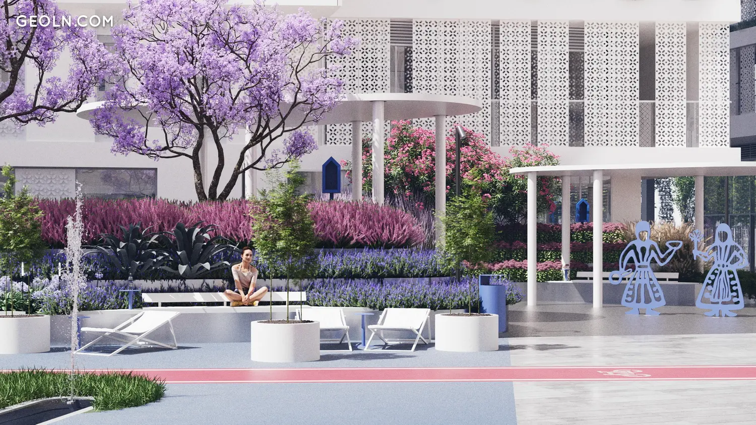 Целый квартал для жизни, работы и отдыха. Двор без машин, бассейны, спортзал, кафе, магазины, coworking и детский сад — всё под рукой, не выходя за пределы комплекса. Территория SUMMER 365 — закрытый зеленый двор только для своих.