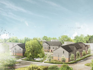 Усадьба Полесье - это комплекс уютных многоквартирных жилых домов. Здания имеют современный дизайн и простую архитектурную форму. Фасад выдержан в светлых тонах, добавлены контрастные цветовые элементы.