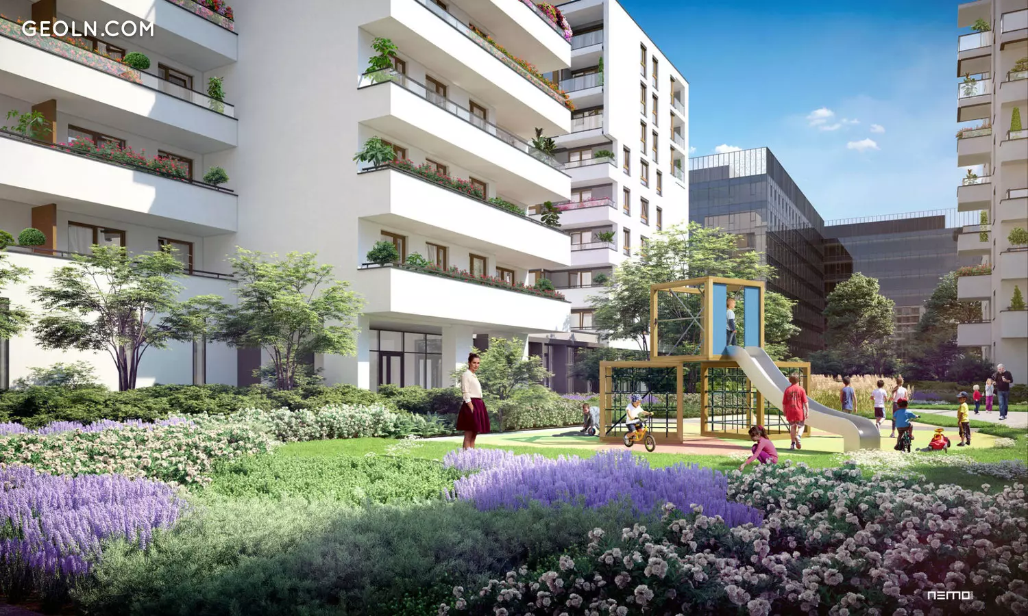 Современный комплекс многоквартирных домов Positive Mokotów в варшавском Мокотуве реализуется поэтапно и имеет сертификат BREEAM.