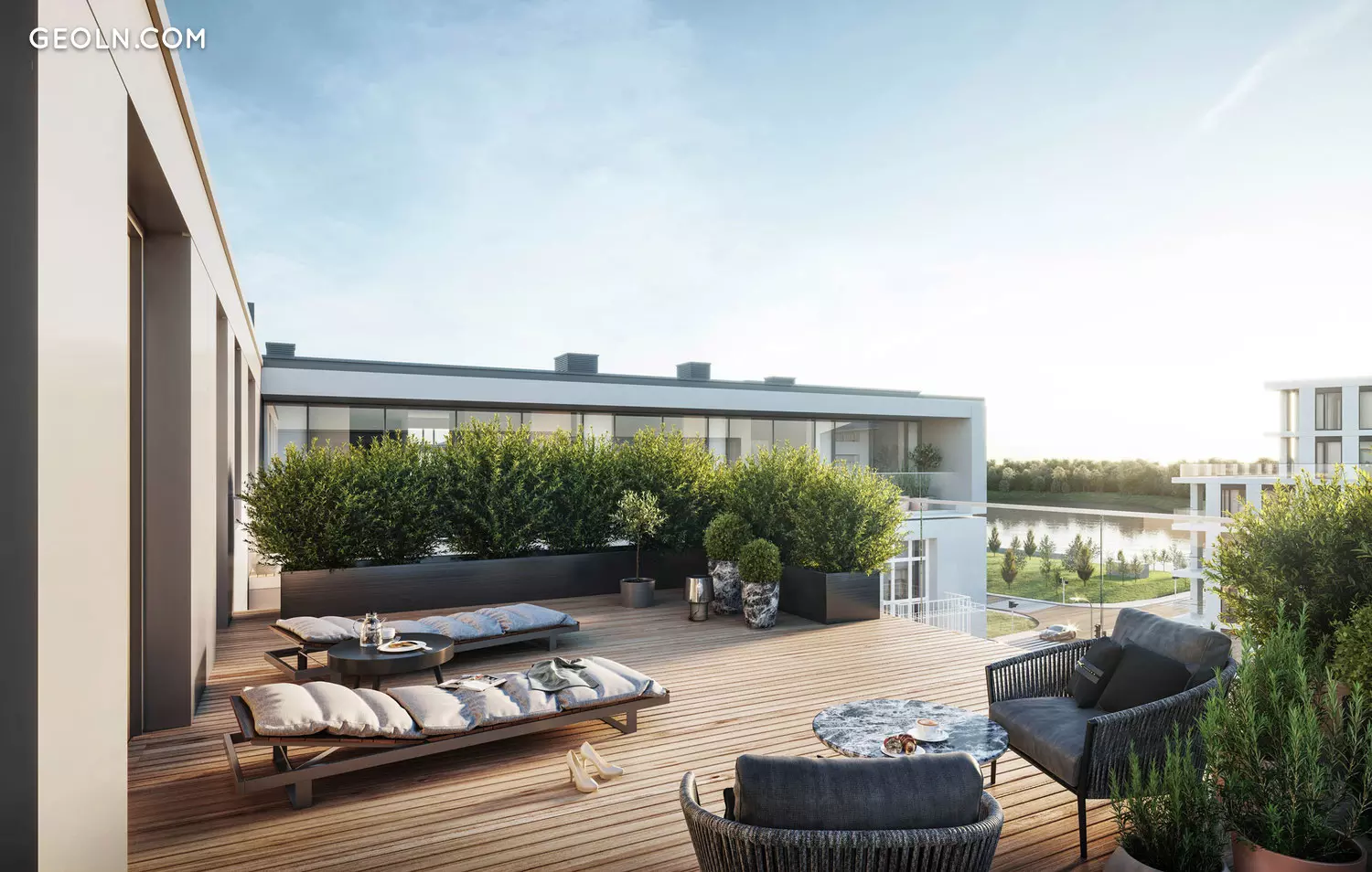 Инвестиция состоит из 49 одноуровневых квартир (от 27 до 124 квадратных метров) и 2 двухуровневых квартир (126 и 172 квадратных метра). Помещения содержат от 1 до 5 комнат и дополнены балконами и террасами. Самые большие квартиры имеют более одной ванной комнаты и дополнительные комнаты (тренажерный зал, библиотека, гардеробная). Предлагаются отделочные услуги под ключ.