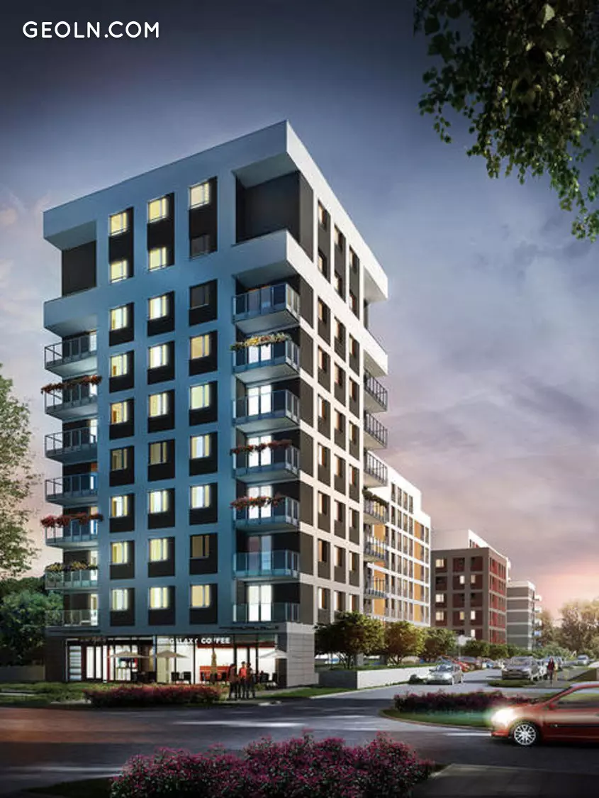 Недвижимость, которая реализуется поэтапно, занимает площадь более 6,4 га, четвертая часть из которых - это застроенные зеленые зоны. Здания современного дизайна, каскадного строительства, с деревянными крашеными окнами. Фасад отделан натуральным камнем. Между зданиями большие расстояния.