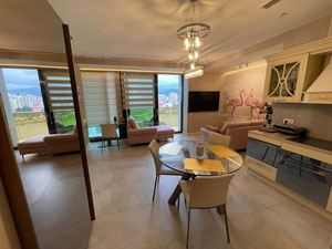 Квартира площадь 36,8 м². Имеет вместительную кухню-гостиную, отдельную спальню, большой санузел и балкон. Сделан дизайн-проект и качественный белый каркас, разведена электрика и сантехника. А с 29 этажа открывается прямой шикарный вид на стадион, горы и море.