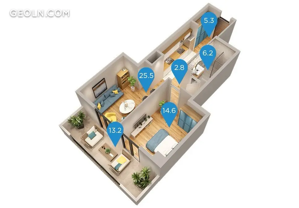 • 2 комнаты | 1 спальня – оптимальная планировка для аренды