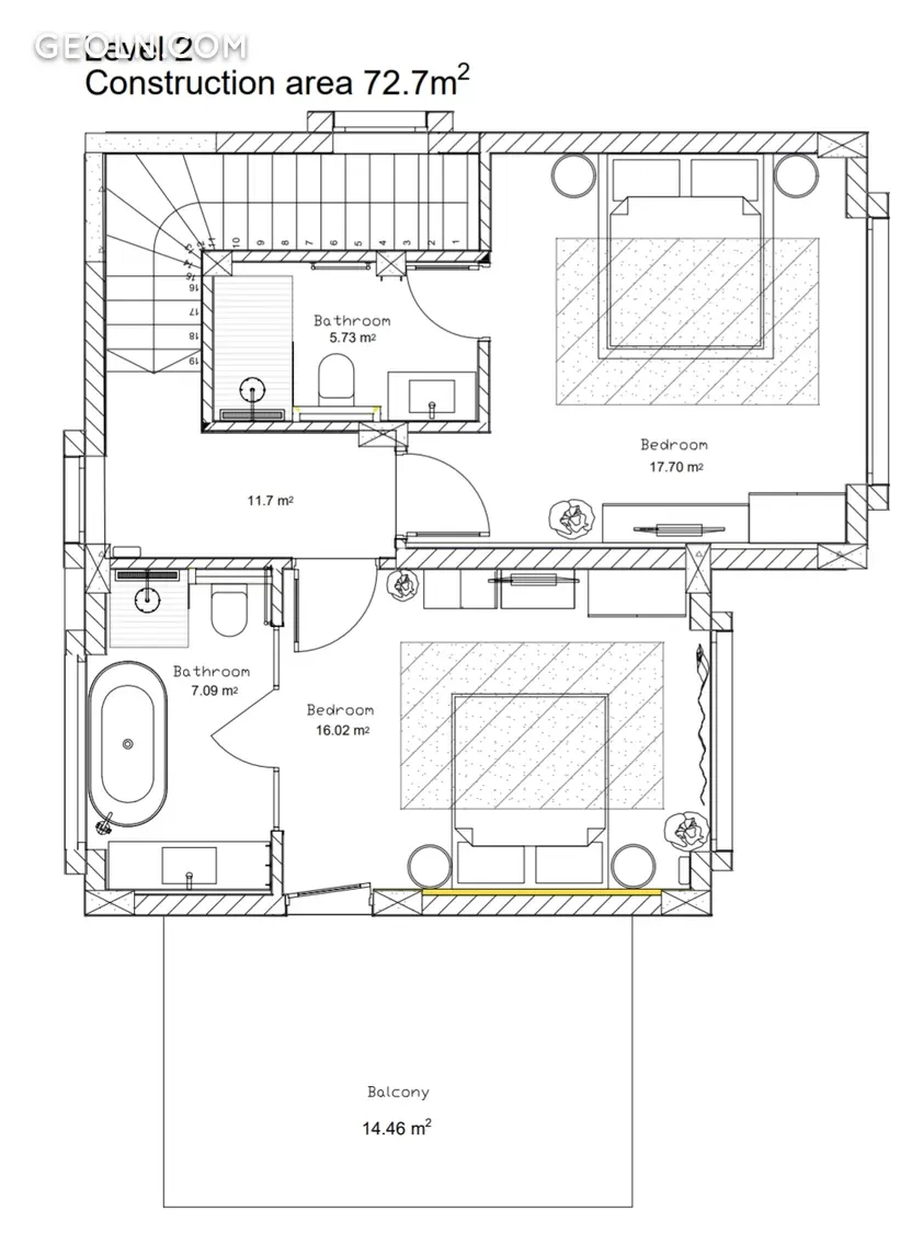 Из каждой спальни есть вход в личную ванную комнату и сан узел.