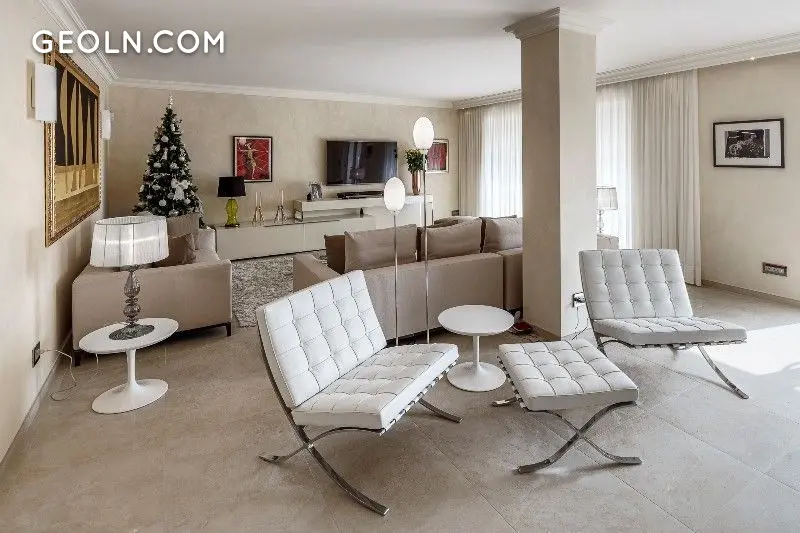 Второй уровень: бассейн с переливом и подогревом, и что очень важно с морской водой. Фруктовый сад, оливковая аллея, зона с тропическими деревьями, зона с тремя фонтанами из натурального камня, отдельно стоящее помещение под садовое оборудование. Скамейки дизайнерские. Десять лежаков дизайнерской работы, каркас из нержавейки, стоимость каждого лежака 7 000 евро. Два больших жезлонга, каркас из нержавейки. В бассейне фонтан с переливом. Есть душ. Бассейн сделан по последним технологиям. Эффект «морской воды с добавлением минералов». Самостоятельно отслеживает количества хлора, автоматическая подача хлора.