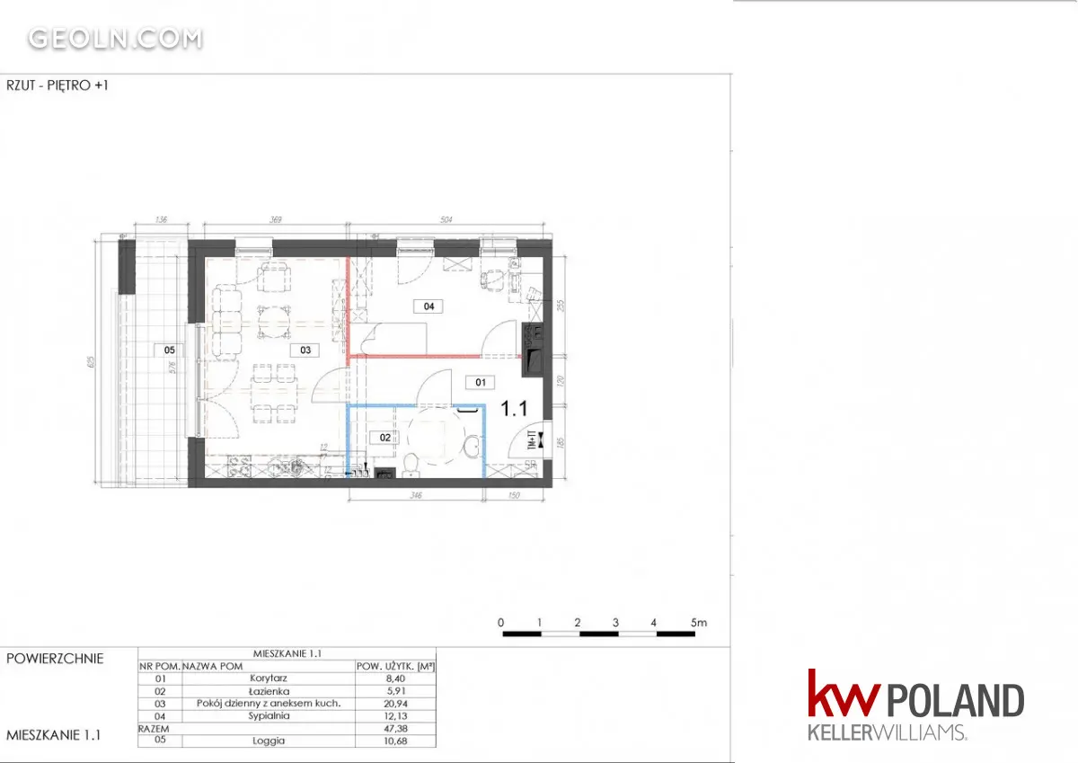 Предлагаемая квартира расположена на первом этаже. Его площадь составляет 47,38 м2.