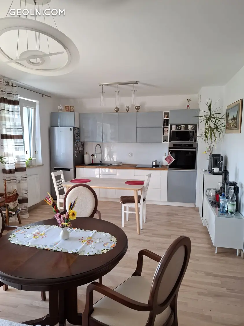 Продаю комфортную, солнечную, роскошную квартиру площадью 63 метра в очень хорошем районе Устки. Квартира находится в новостройке (5 лет), в доме всего 2 квартиры. Квартира расположена на первом этаже с выходом с террасы в сад. Идеально подходит для пожилых людей или родителей с детьми. Квартира имеет: 2 спальни, гостиную с мини-кухней, кладовку, гардеробную, отдельное место для стиральной машины и сушилки, ванную комнату с душем, отдельное биде. Перед домом есть приватное бесплатное место для парковки. Квартира теплая с деревянным паркетным полом. Мебель с радостью остается будущему владельцу. Газовое водяное отопление - плита в ванной комнате. Индукционная плита на кухне. Недалеко от магазинов: Mrówka, Biedronka, Żabka. Рядом: школа, луг для выгула собак, недалеко (500м) место, куда можно сходить, купить и поесть домашние обеды. До центра Устки и пляжа можно дойти пешком около 2 км. Я рекомендую:)