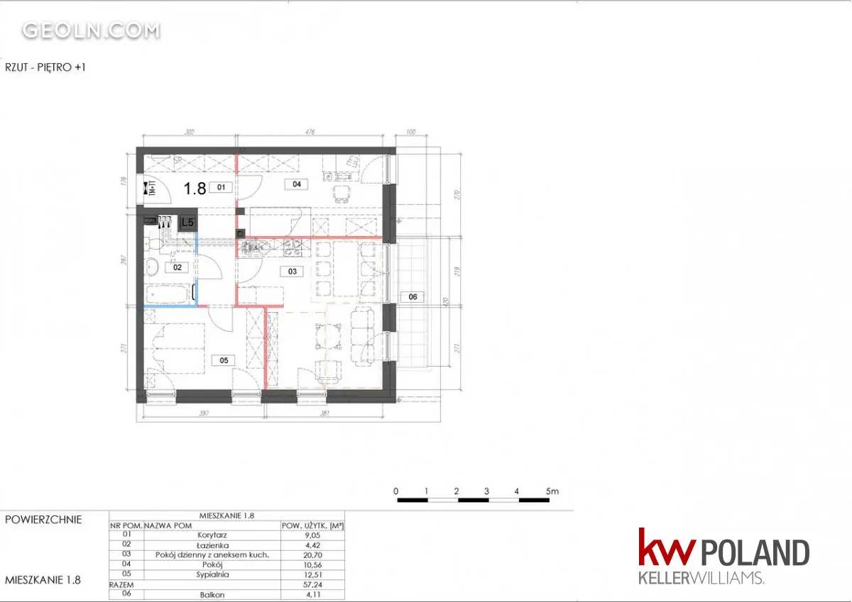 Предлагаемая квартира расположена на первом этаже. Его площадь составляет 57,24 м2. Это последняя 3-комнатная квартира, доступная в этой инвестиции. Идеально подходит для семьи с детьми.