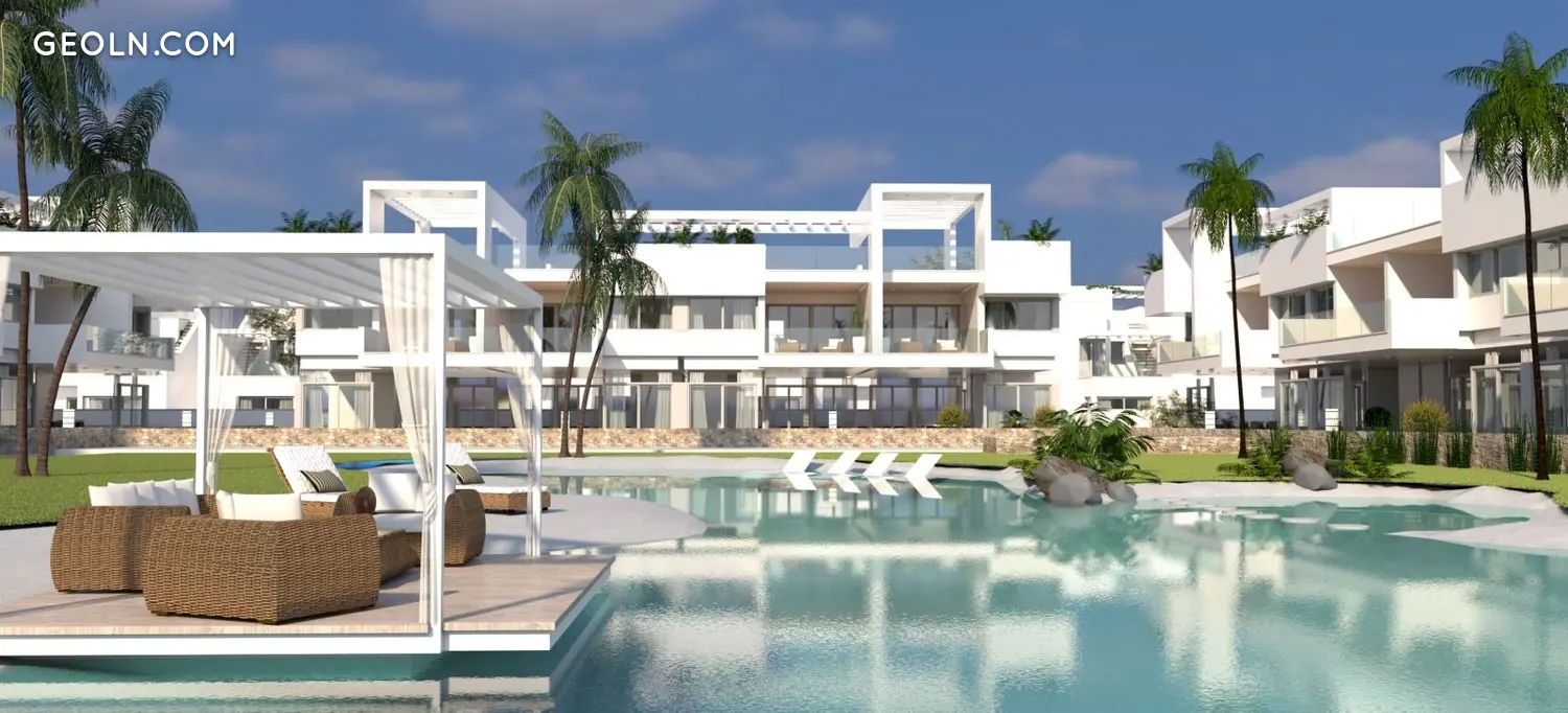 Бунгало с двумя спальнями и двумя ванными комнатами на берегу соленого озера Торревьеха. Просторные апартаменты у общего бассейна с соленой водой, поэтому хлор не используется. Добро пожаловать!