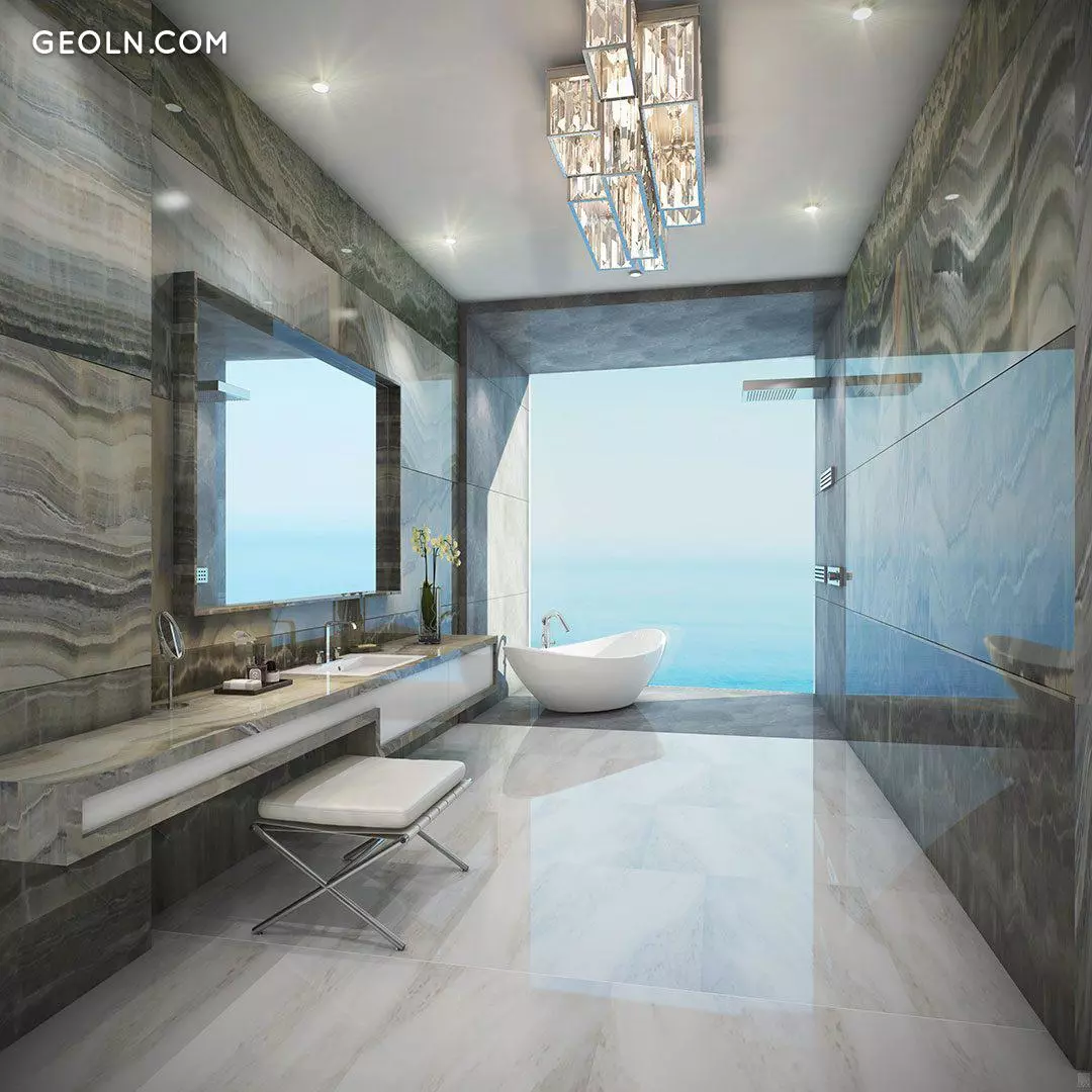 Комплекс The Estates at Acqualina, задуманный как лучшие в мире резиденции, предлагает резиденции с необычайно пропорциональными и изысканно оформленными домами с необычными террасами. Захватывающая панорама Атлантического океана и города окружает каждую резиденцию. The Estates at Acqualina предлагает 245 роскошных резиденций от трех до семи спален в двух 50-этажных бутиковых башнях, Via Acqualina 777 и Via Acqualina 888. Каждое небесное поместье будет доставлено с готовой мебелью и оснащено лучшими приборами, импортным камнем. столешницы, технология умного дома и 10-футовые 6-дюймовые потолки. Каждый мастер-люкс может похвастаться своей ванной комнатой с импортными столешницами из оникса, стенами и мраморным полом, паровой душевой кабиной, отдельно стоящей ванной, душем с видом на океан и продумать его и ее гардеробные комнаты. Резиденции в The Estates at Acqualina стоят от 3,9 - 9,0 млн. Долларов до 40 млн. Долларов за пентхаусы.