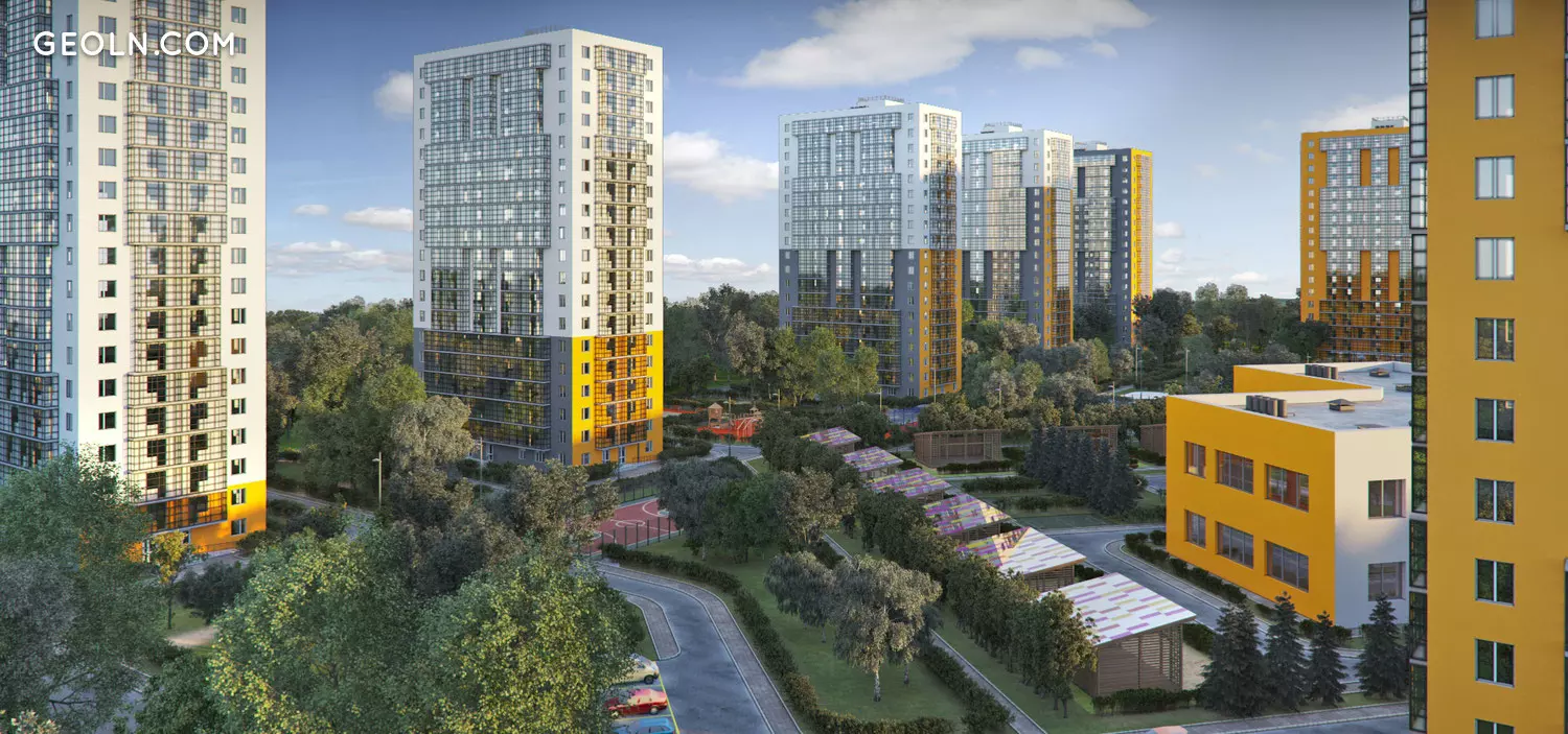 A ten-minute walk from the new building is the Yubileynaya railway station, less than one kilometer from the bus stop on Dorozhnaya Street. Travel time to the airport by car will be approximately twenty minutes.