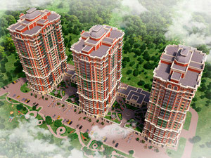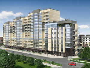 At the doorways are freight and passenger elevators. The houses are connected to the central city communications. The first levels of buildings are designed to accommodate a number of commercial enterprises