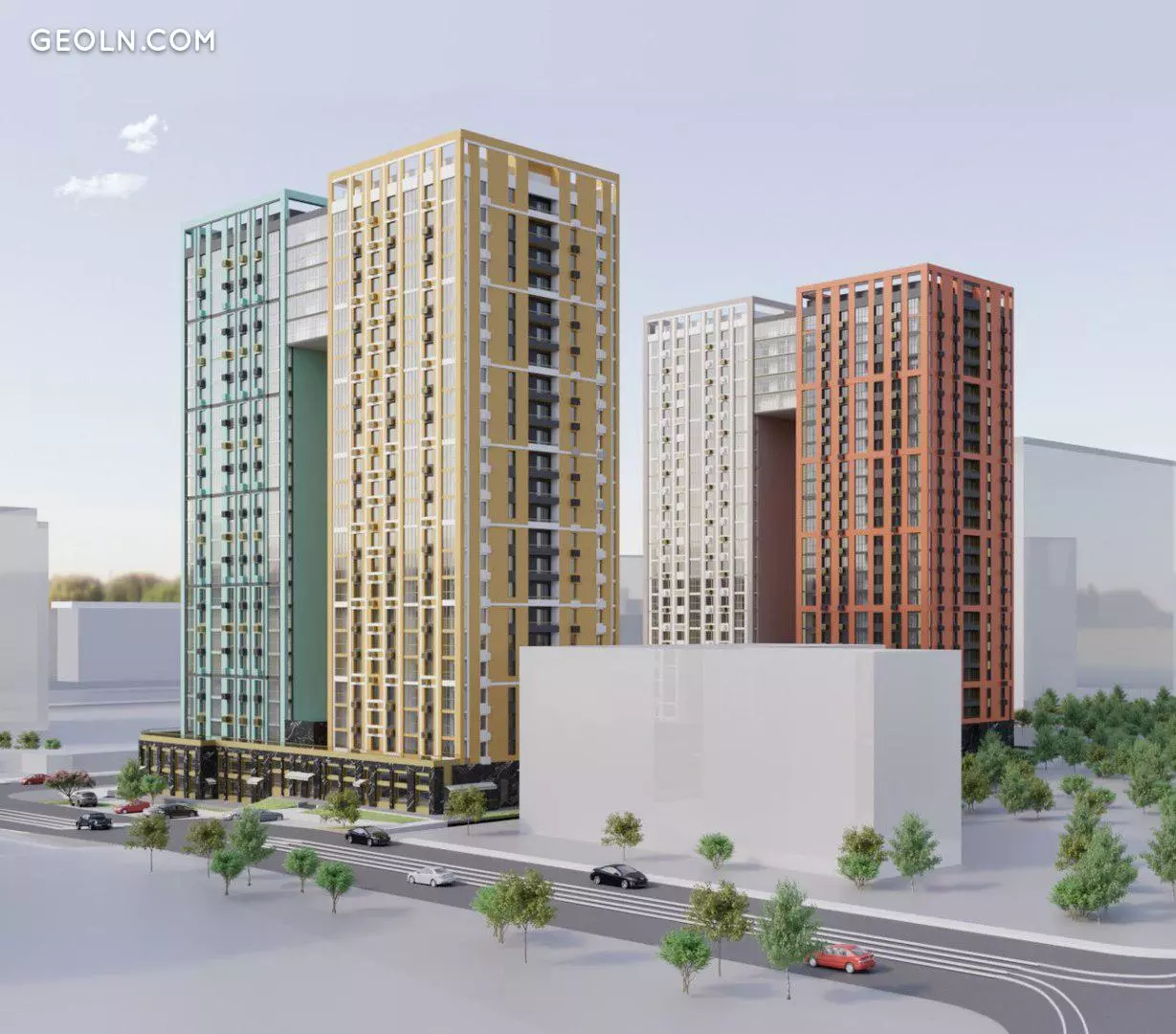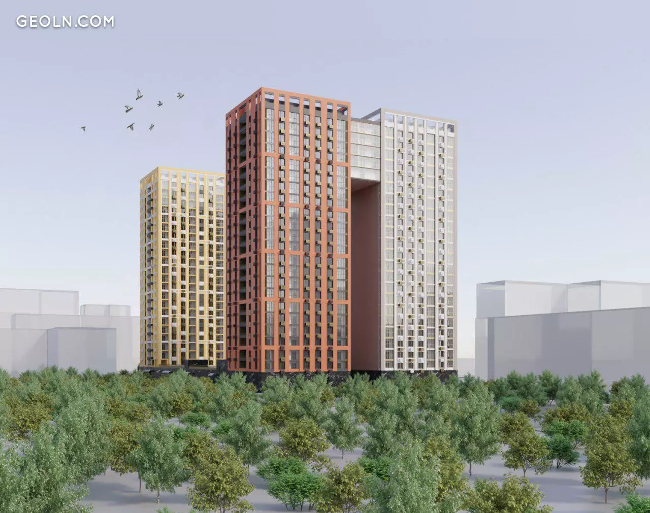 The new building is a four-section twenty-two-story house, built on a spacious stylobate, which is supposed to be used as a local area.