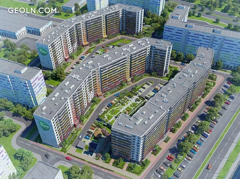 In a radius of a kilometer from the housing estate there are educational institutions, kindergartens, chain supermarkets. Nearby is a hypermarket and several gas stations. A few hundred meters away is a convenient traffic intersection, near a bus stop and regular buses. The distance to the Ring Road is two and a half kilometers, to the Kupchino metro station is about four kilometers.