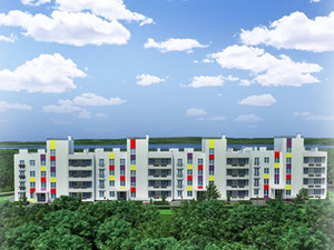 Houses are being built in the Kirovsky district of the city, on the territory of the former Sputnik stadium. The proximity to the Moscow highway determines the good transport accessibility of the residential complex, and the forest zone significantly improves the ecological situation.