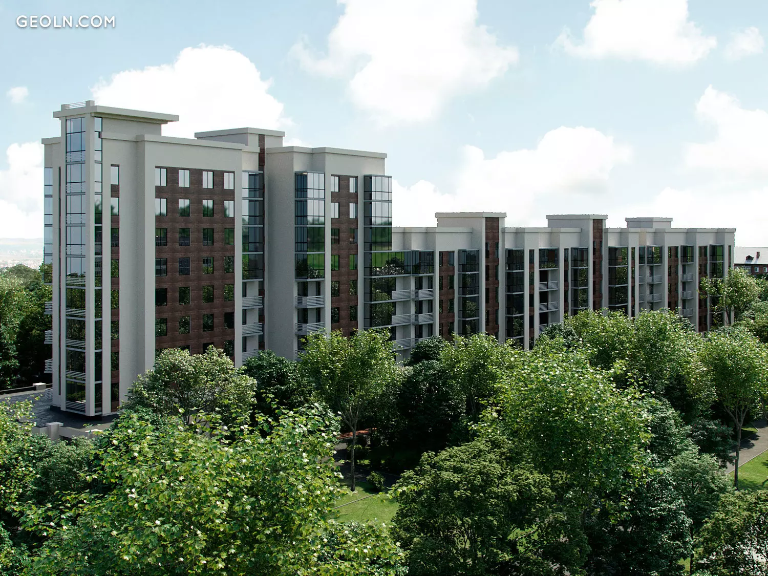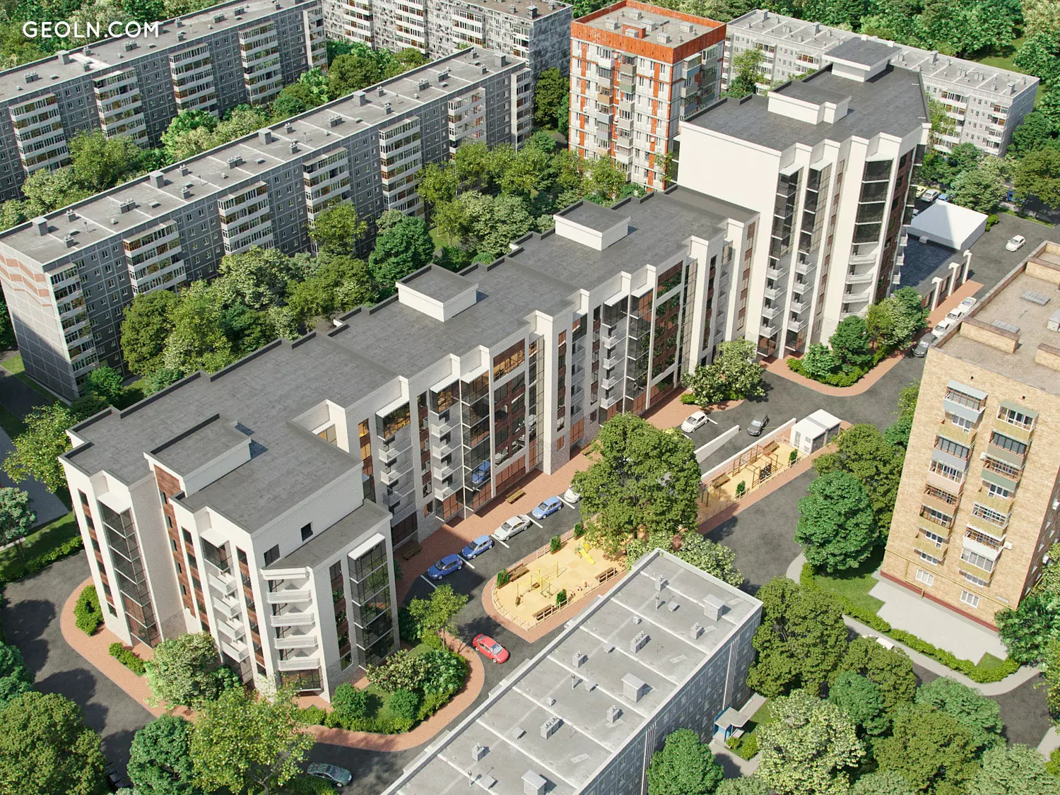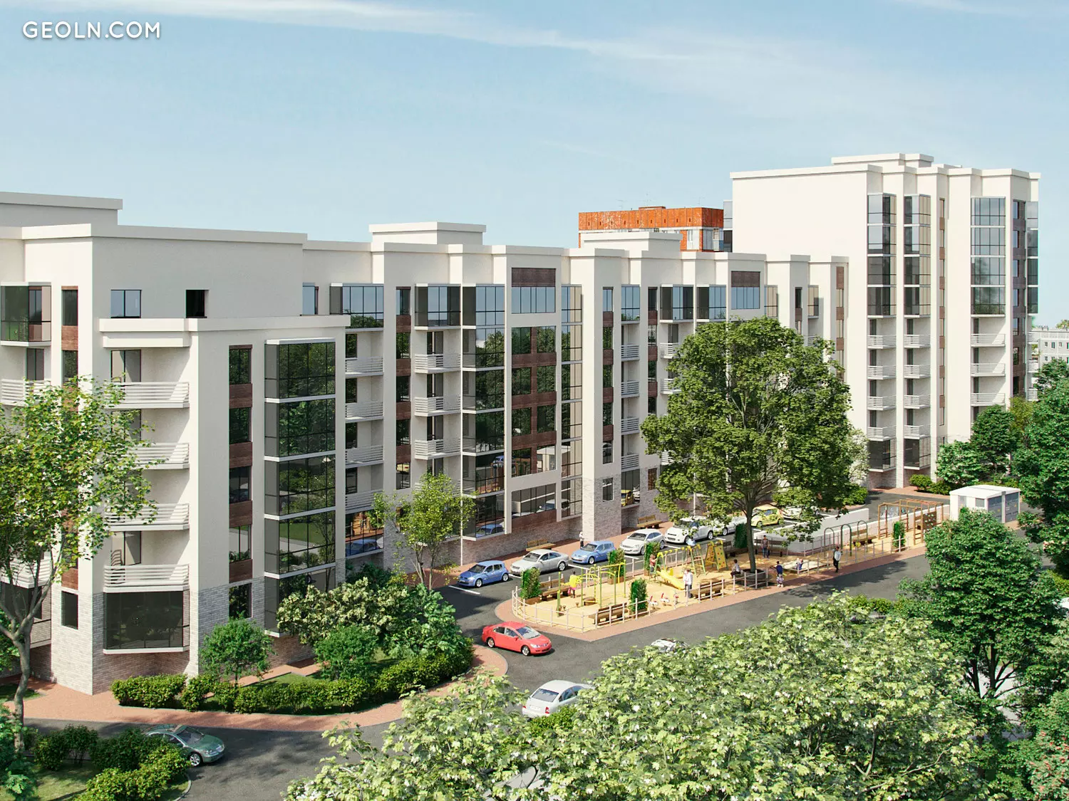 New comfort class residential building located on a quiet green street 121 of the Rifle Division in the central part of the city.