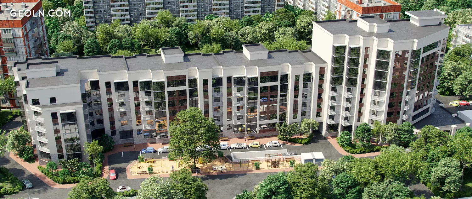 Chamber, low-rise house with low floors, which is a cozy rustic-style housing with a patio, which is hidden from the noise of the streets. The residential building consists of 4 sections of different floors (from 6 to 9). The European style of architecture gives the building a charm and stands out against the background of the general development.