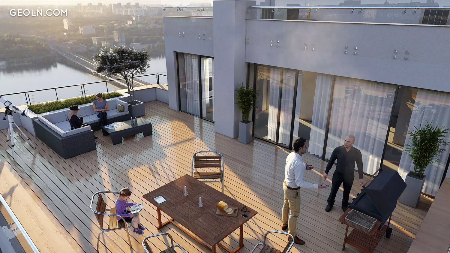 Stained glass glazing, emphasizing the smoothness of lines and the majesty of forms, is in harmony with the magnificent panorama of the park area and the Voronezh reservoir, located directly in front of the complex. The proximity to the center, combined with the location near the reservoir and the park zone, allows us to speak with confidence about the uniqueness of the project, which will allow its residents to stay in the familiar urban environment with a developed and affordable infrastructure, along with the ability to enjoy nature.