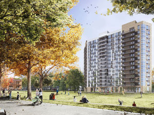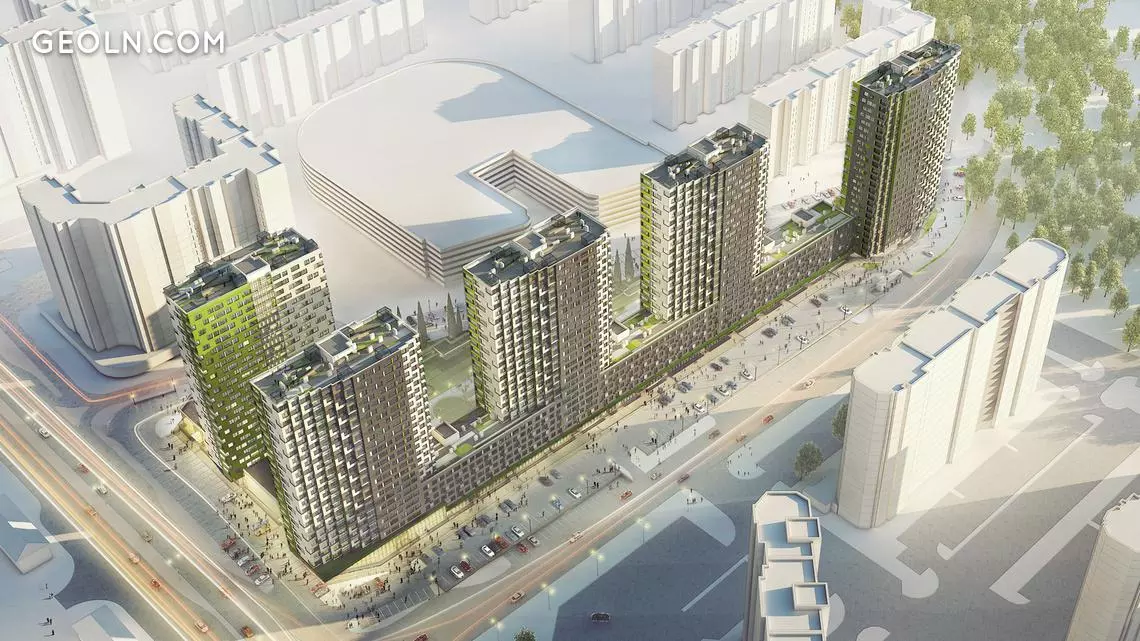 In the stylobate part of the complex are shops and other objects of urban infrastructure - they have entrances isolated from the residential area.