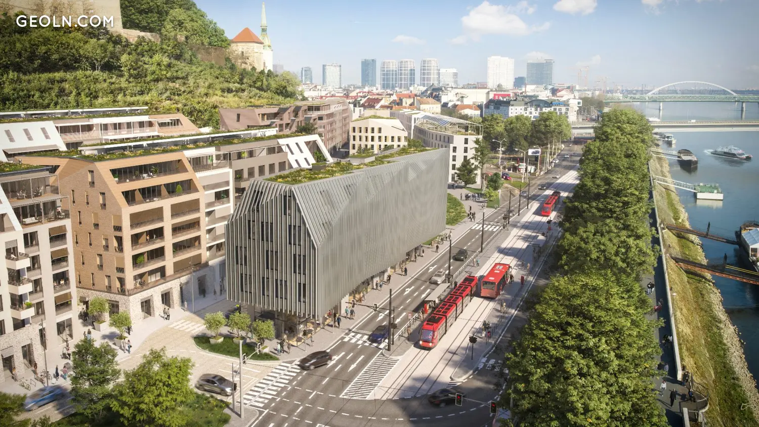 The new neighbourhood in Bratislava's Castle District located on the site of historical Vydrica district wants to live up to all standards of modern urban development. The project's sustainable quality goes beyond its local urban meaning and lends this part of Bratislava the continuity it had been deprived of. The wounds of the divided sides of the city centre will be healed eventually making the physical and mental barriers fade away.