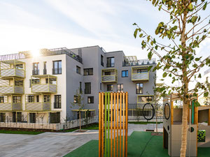 The project consists of 42 building plots and 22 beautifully crafted villas, comprising 3 family sized apartments, one on each floor. 44 of them are 3-bedroom garden flats and 22 are 2-bedroom top floor apartments boasting a roof terrace with magnificent views of Devín castle.