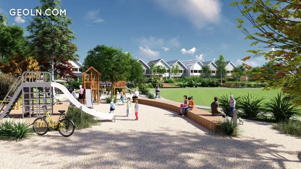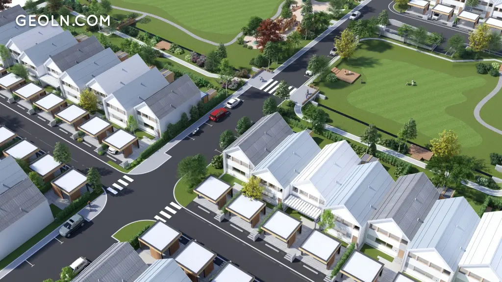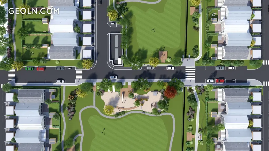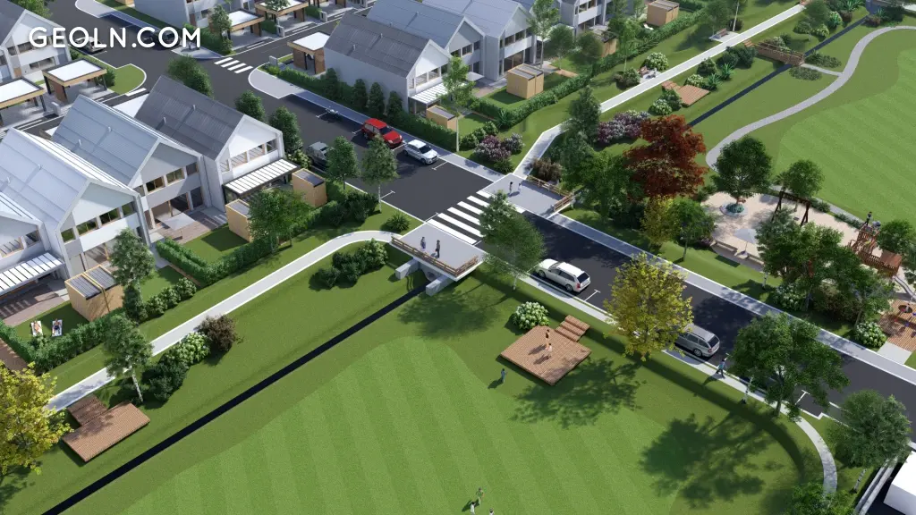 The well-thought-out architectural design of the neighborhood also includes the landscaping of common areas intended for socializing and spending free time, as well as safe children's play. There will be additional common parking spaces for visitors, and there will be no other traffic in the neighborhood.