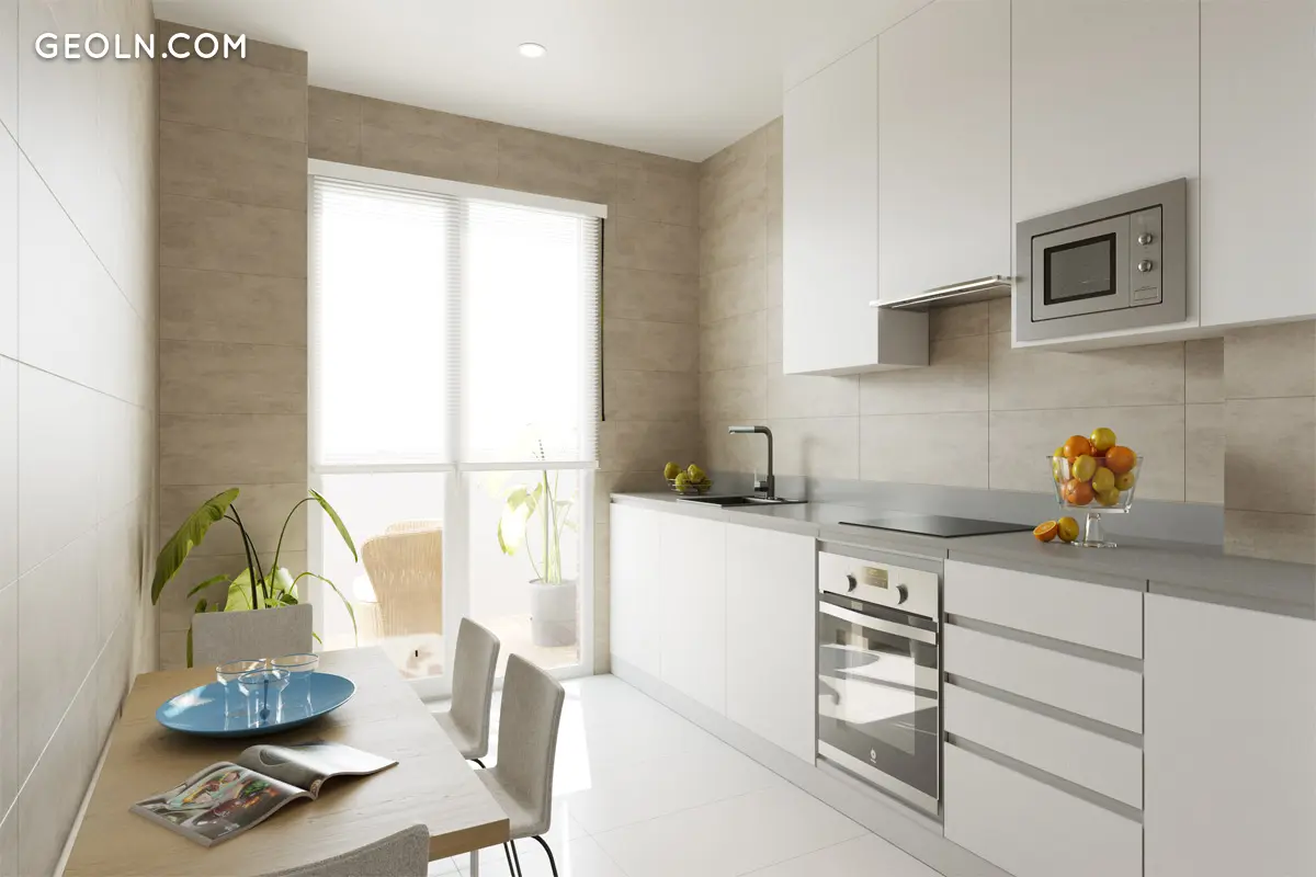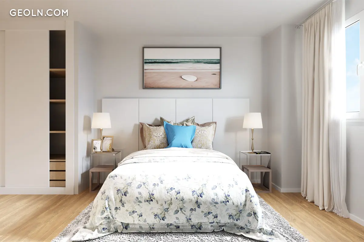 The houses have a modern style that combines neutral tones in walls and interior carpentry with wood-colored floorings. This design, together with the good orientations of the homes, will create very bright and cozy rooms. On the other hand, as a result of a careful study of the distributions, in Aralis you will find very functional homes where the space is used to the maximum, including modular wardrobes.