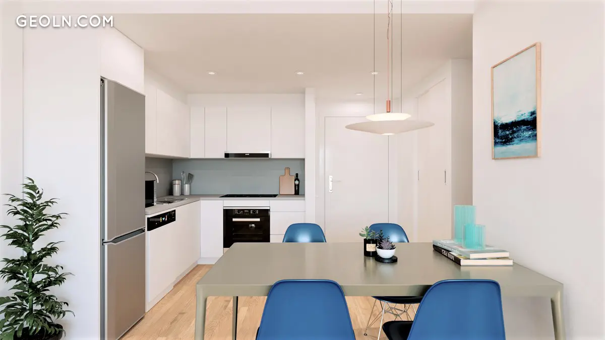 We deliver furnished and equipped kitchens; including high and low-capacity cabinets, compact material top and front, ceramic hob, telescopic extractor hood and electric oven. The homes have DHW Installation using Individual Aerothermal equipment with high energy efficiency.
