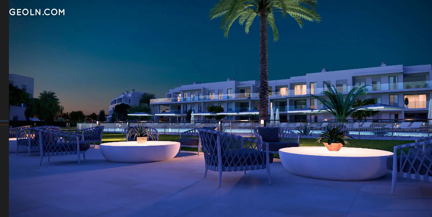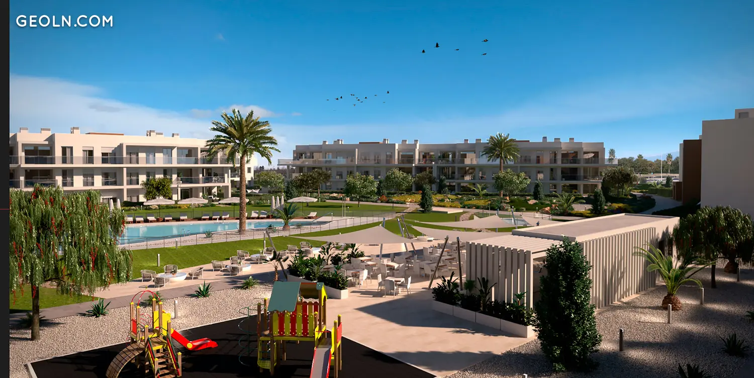 168 homes of 2 to 4 bedrooms with parking spaces and storage rooms. A residential consisting of 8 buildings in which you will find penthouses with spacious terraces and solarium, ground floor with private garden, duplex with large terraces and garden. Homes to enjoy throughout the year, with spacious rooms and open to spacious terraces with unbeatable orientation overlooking the common areas and making the most of natural light.