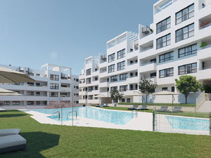 A modern and elegant residential complex of apartments, flats and penthouses of 2 to 4 bedrooms with 2 parking spaces, 1 storage room and great terraces open to the sea, integrated in a contemporary Mediterranean-style construction.