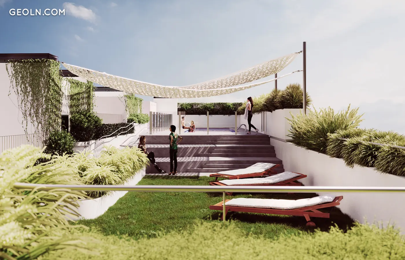A promotion that makes the most of the common spaces to give them life. Thus, in the lower area, we can find a design children's area for the little ones and on the roof of the building a unique space has been designed, with views and everything you need to enjoy free time with swimming pool, solarium, gardens and gastro terrace with chillout area.