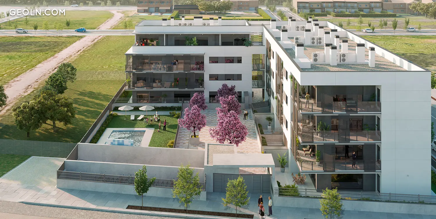 The PARC DOMENY complex is located in Girona, located in the neighborhood of Fontajau-Domeny, a consolidated neighborhood, close to the train and bus station, a few minutes from the city center and well connected.