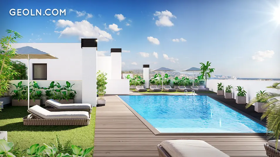 Lorca Building, located in Torremolinos, in front of the Town Hall and next to Federico García Lorca Square, it is a new building promotion, of modern and elegant architecture. It consists of 49 apartments, 1, 2, 3 and 4 bedrooms, and has a swimming pool, solarium and relaxation area on the roof of the building. Its magnificent location allows you to have at hand all the services that any family may need, and without the need to use a vehicle: municipal services, colleges and institutes, market, supermarkets and shops, health center, catering areas, banks, stop bus, sports center, municipal music school, pine tree park, beaches and Málaga-Fuengirola commuter train stop, these last two are only 7 minutes away. And also with very easy and close access to the Malaga-Marbella motorway.