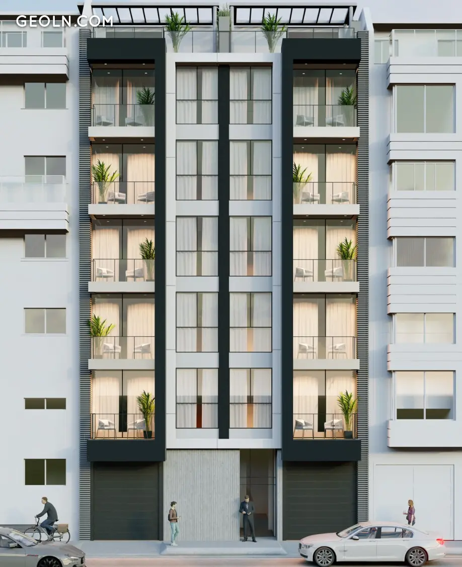 Next construction of an avant-garde design building in Valencia, next to Bulevar Norte.