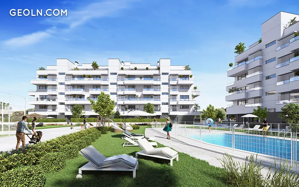 The inner private urbanization, with 3.000 m2 of free areas with communal swimming pools (for adults and children), playground area, recreation, paddle tennis court, trees and green area, is complemented by a closed space for community use and bicycle rooms. Services that will allow residents to enjoy their leisure time without leaving the urbanization.