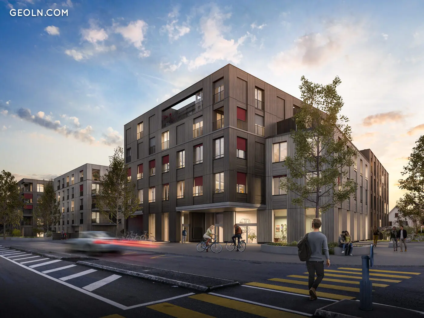 Your new place of residence and work in Winterthur Neuhegi: As of October 2022, 7 architecturally convincing apartment buildings with 109 stylish rental apartments and around 1,500 m2 of commercial space will be built embedded in a park-like complex. From the 1-room living studio to the 5.5-room apartment, all apartment types meet the requirements of a modern and high-quality home.